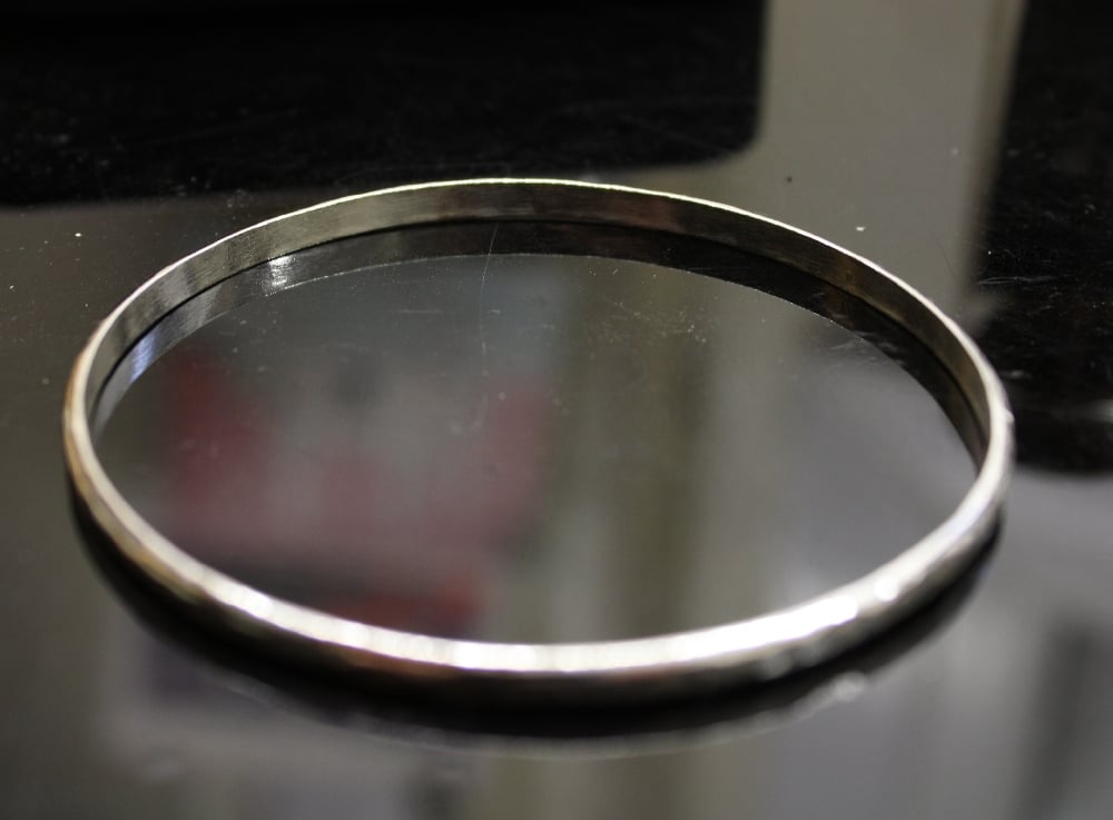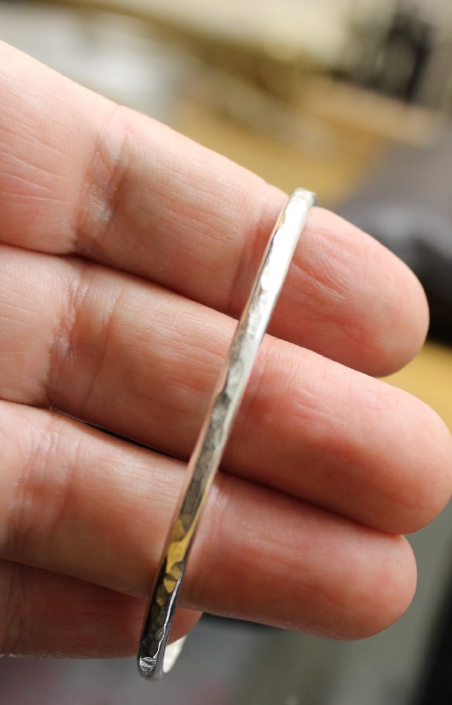 Argentium silver bangle with hammered texture Can be worn on its own or as stacking ones Weighs 10g Hallmarked